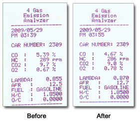 guna AirBoom pelepasan CO = 0.09%. Selepas pasang AirBoom di Air Box